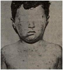Затем постепенно и быстро высыпание охватывает и соответствующую половину туловища и конечность. В редких случаях высыпь может поразить и другую половину тела, причем здесь она слабее выражена. Высыпь выражается в несколько выступающих, красных, острых, 10 — 20 мм в поперечнике эритемопапул.