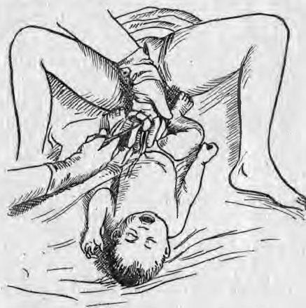 На пуповинный остаток накладывают грушевидную повязку, предложенную А. И. Чистяковой. Эта повязка состоит из двух квадратных марлевых салфеток размером 10 X 10 или 12 X 12 см. Одну из них накладывают непосредственно на пуповину, а другую складывают треугольником и завязывают узлом (в виде косынки) на границе между пупочным кольцом и пуповинным остатком. Узел туго затягивают, кожу не захватывают. Повязку снимает на 5-й день лечащий врач, который осматривает пуповинный остаток и накладывает вновь такую же стерильную повязку. После отпадения пуповинного остатка пупочная ранка сецернирует: ее лучше всего прижечь 5% раствором марганцевокислого калия и в последующем присыпать стрептоцидом (белым); ранка остается открытой.